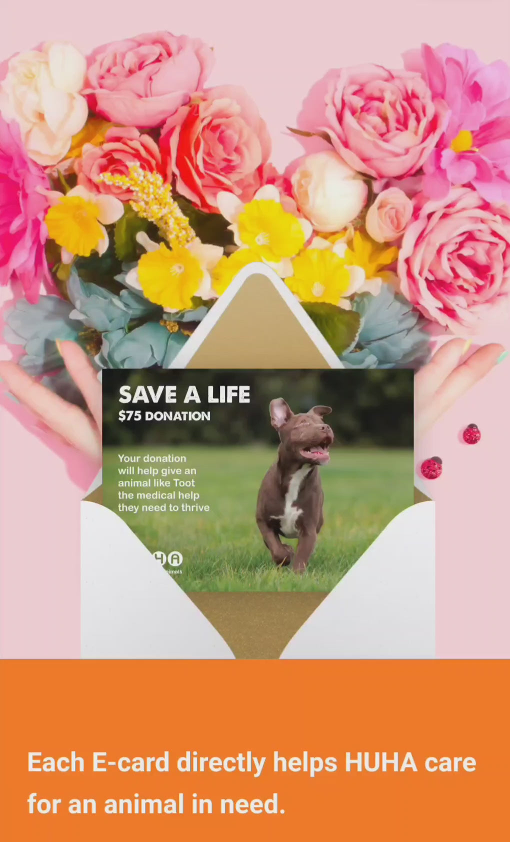 Save a life- Purchase a "save a life" digital gift card today! Each gift directly helps HUHA care for an animal in need.
