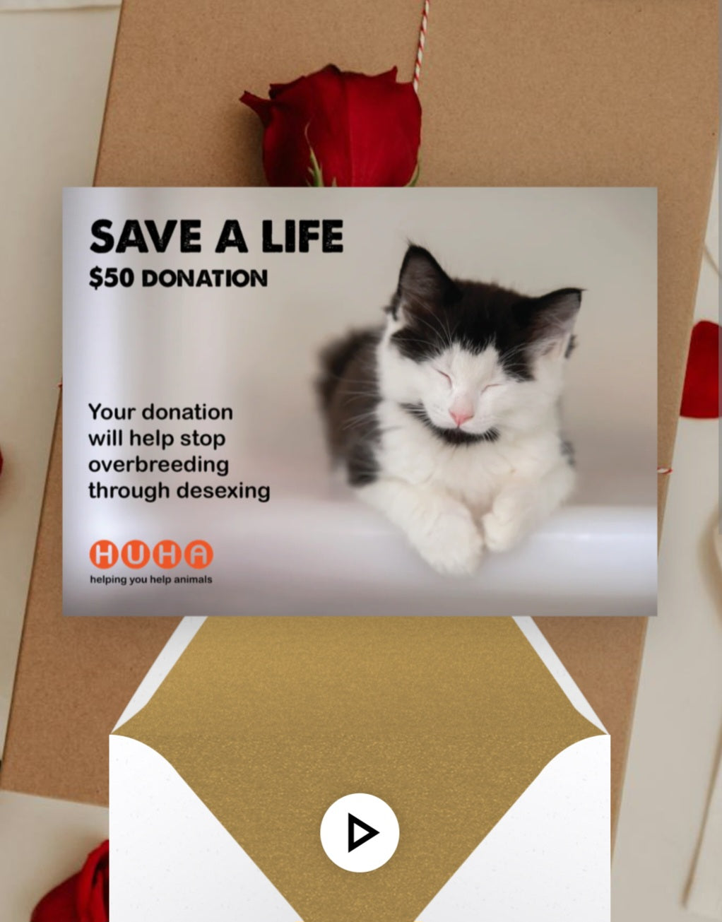 Save a life- Purchase a "save a life" digital gift card today! Each gift directly helps HUHA care for an animal in need.